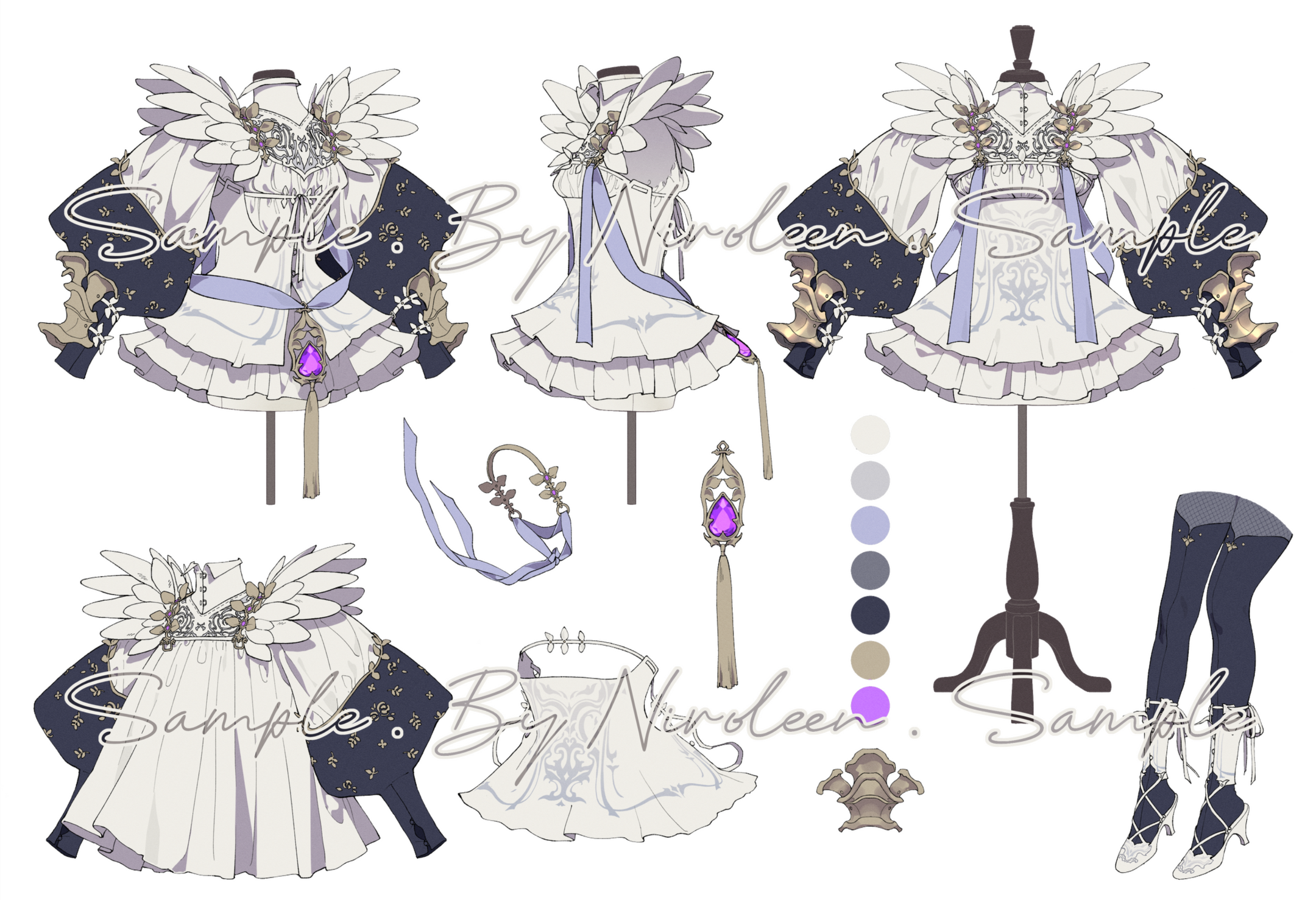 You will receive a full turnaround reference of your custom outfit + any additional resources (like patterns) if applicable.